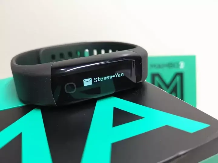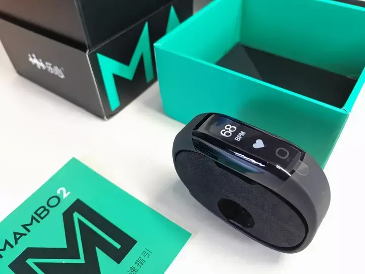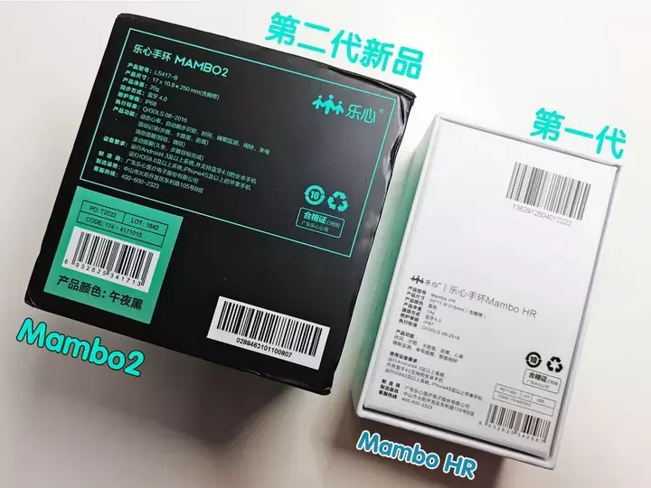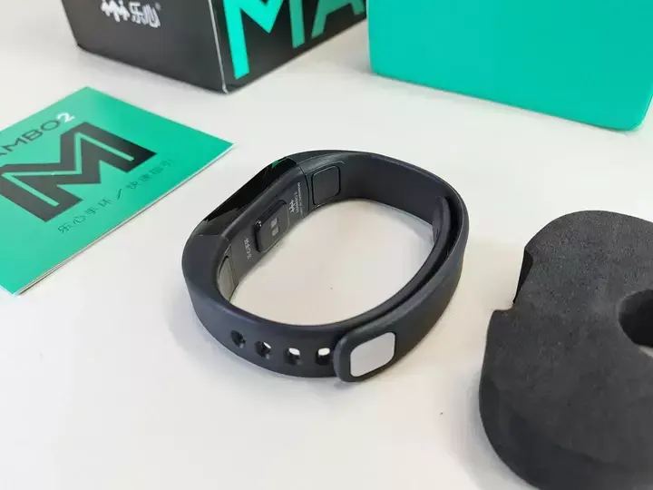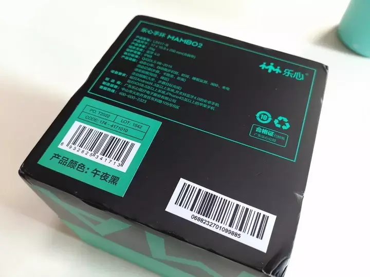 黑、绿强烈对比配色的盒子,对应的Mambo2是“午夜黑”配色,这款乐心还有其他多彩配色,更具青春气息。