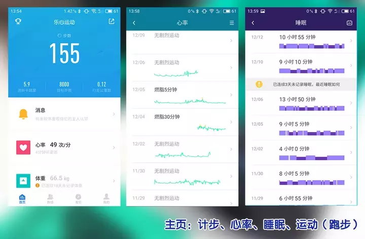 乐心APP的老三样(计步、心率、睡眠记录)如今新增了运动记录,Mambo2可以自动识别跑步模式,让你摆脱运动前每次都要手动设置的繁琐,轻松运动。新版的APP在心率记录、睡眠记录等详情页面也可以像计步详情页一样直观的看到图表数据汇总,让APP的实用性再次增强。