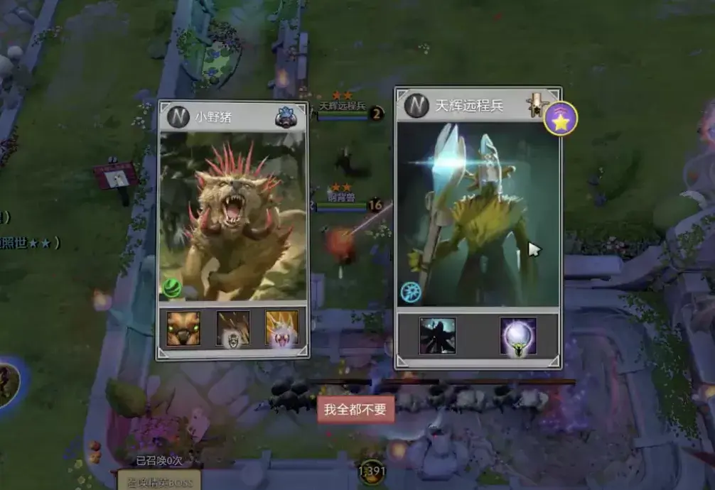 然后就开始抽500的卡,夜魇/天辉的远程/近战小兵都保留,其次保留那些有需要的卡。英雄适配的随从卡优先级最高,狼和石头人其次。