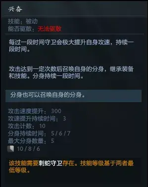 一技能给友军分裂效果,并且攻击的时候有概率触发冲击波,提高一定百分比的攻击,二三技能则作为控场,算是物理系比较常见的辅助英雄,满星的最高层天赋还可以让触发的冲击波再次触发英雄的攻击特效。