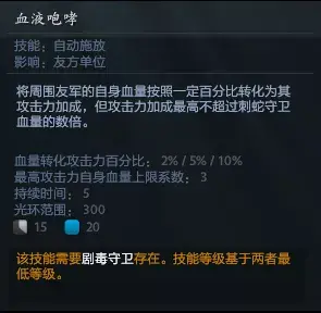 获得新技能,技能效果给周围单位上buff,根据单位的血量上限获得额外攻击力,敏捷物理用的比较多。