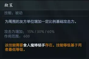 头领获得光环,给周围单位增加60%的攻击,对斯文这种攻击增幅巨高的英雄来说,收益十分有限,对其他物理系来说,稍微好一些。