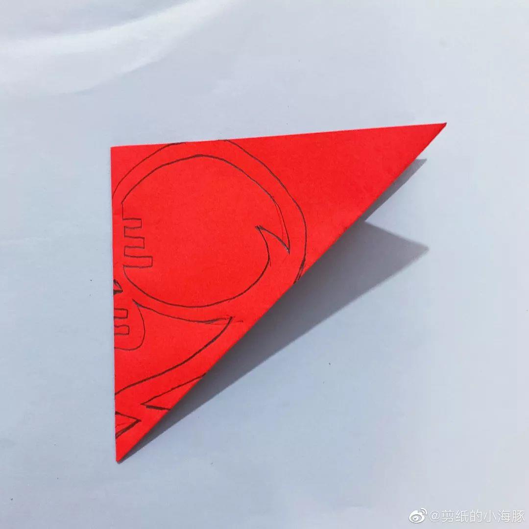 step1: 准备一张纸,纸张对折,开口向右,然后画图;