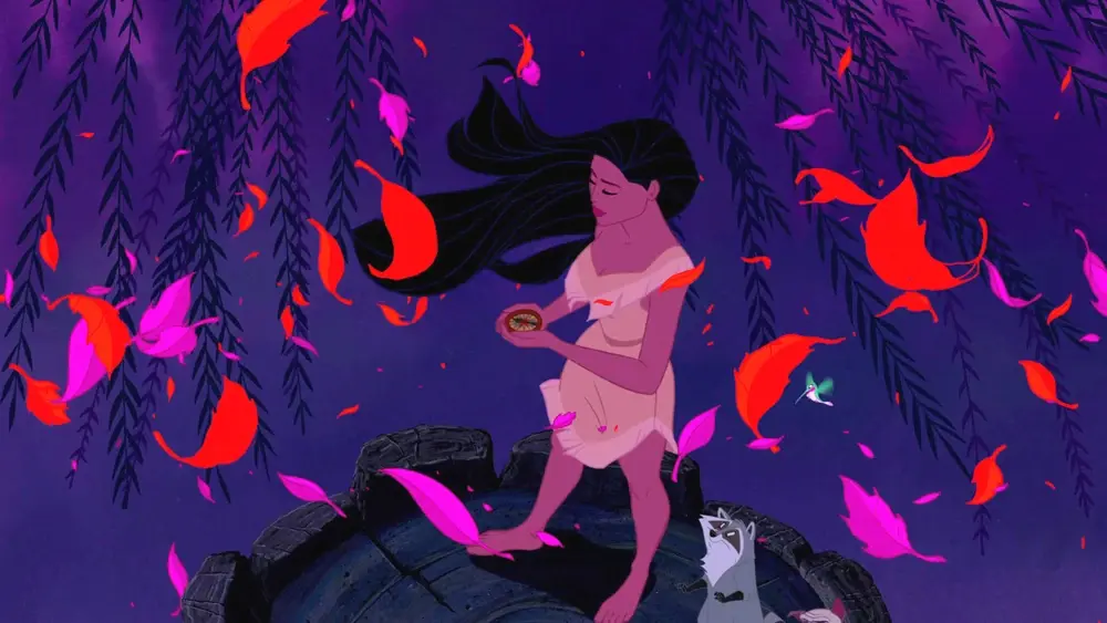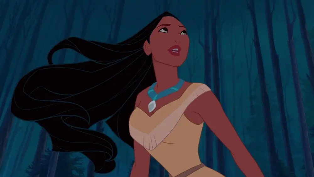 性格特征:高尚、自由奔放,她热爱自己的家园、冒险和大自然。拥有超出其年龄的智慧,并向她周围的人提供善意的指导,因此能够最终化解原住民和英国殖民者之间的冲突。