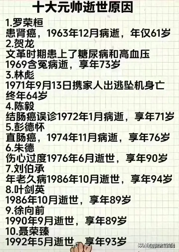 终于有人把十大元帅逝世原因,整理出来了,收藏看看
