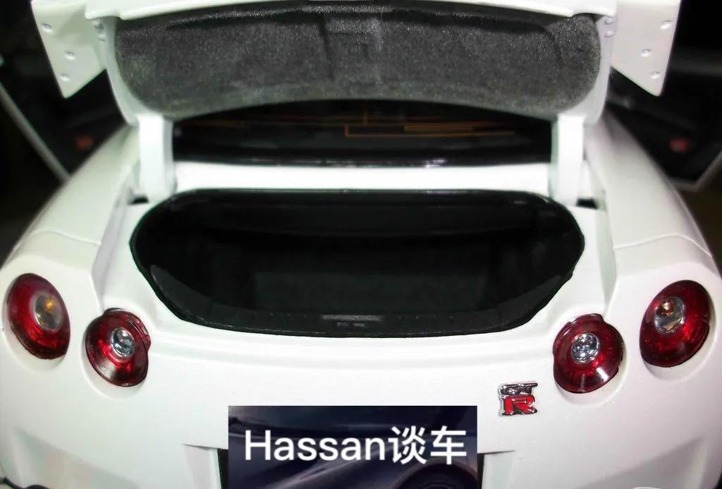 最后打开GTR的后备箱感受下储存空间,由于GTR是一款纯粹的跑车,所以它的后备箱仓仅够放两箱水而已,但对于车主来说已经完全够用,毕竟它并不是一台买菜车或者商务车型。