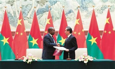 5月26日,国务委员兼外交部长王毅在北京同布基纳法索外长巴里签署《中华人民共和国与布基纳法索关于恢复外交关系的联合公报》。 新华社记者 王晔 摄