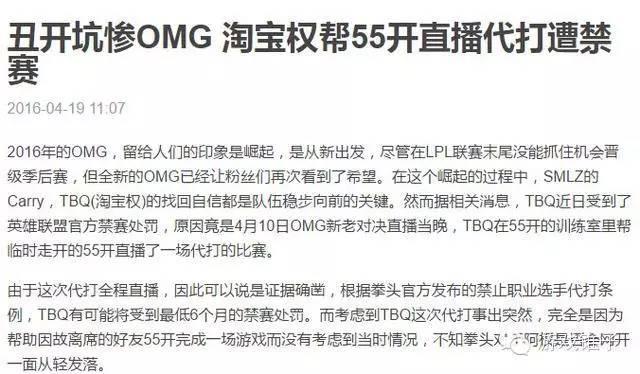 今天又是一波强势,据说淘宝权近日受到了英雄联盟官方禁赛处罚,原因竟是4月10日OMG新老对决直播当晚,淘宝权在55开的训练室里帮临时走开的55开直播了一场代打的比赛。