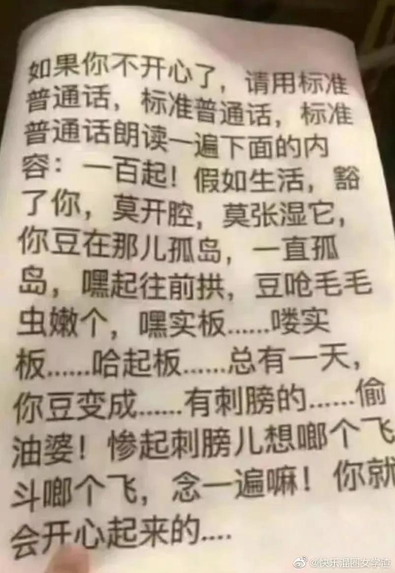 最后,在这里给大家分享一个每天开心的小秘诀:当你每天不开心的时候,就自己或者让你的好朋友来读一读下面的内容,请记住一定要用普通话哦!