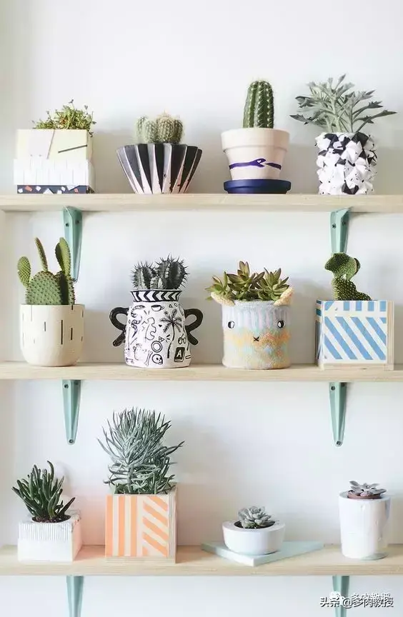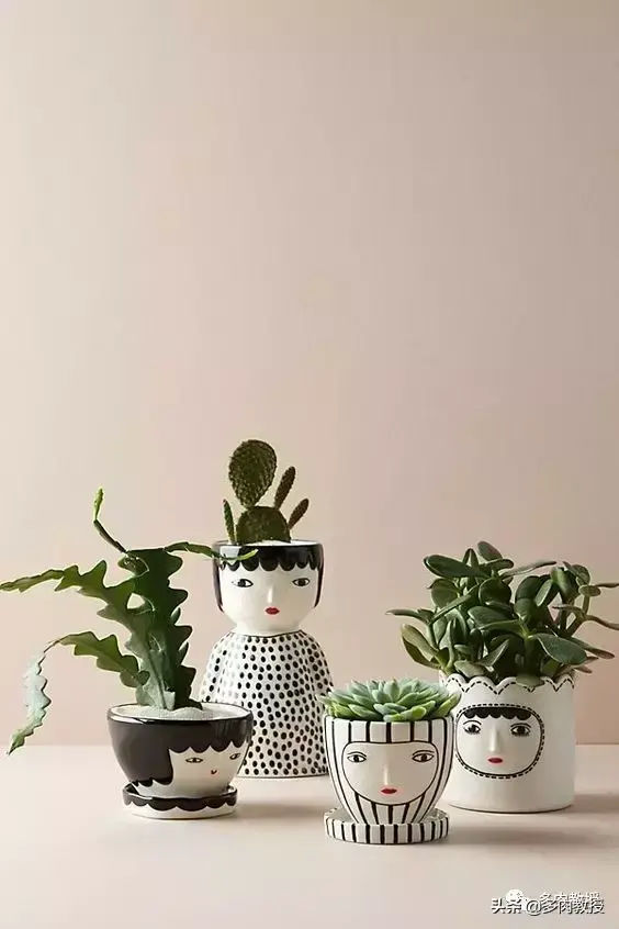 如果觉得上面所有的办法都太麻烦,但是又不想家里的多肉单调的放在一起,看上去没有什么生气,那么你可以选择一些有意思的花盆,或是直接选择同类花盆,这样你家的多肉也会增色很多,最后一起看来看看这些例子吧。