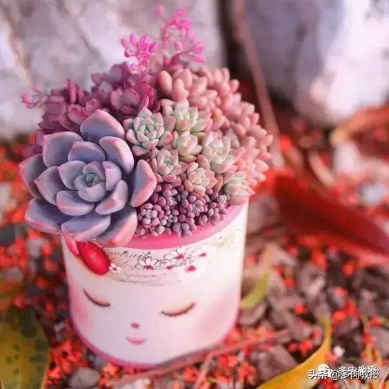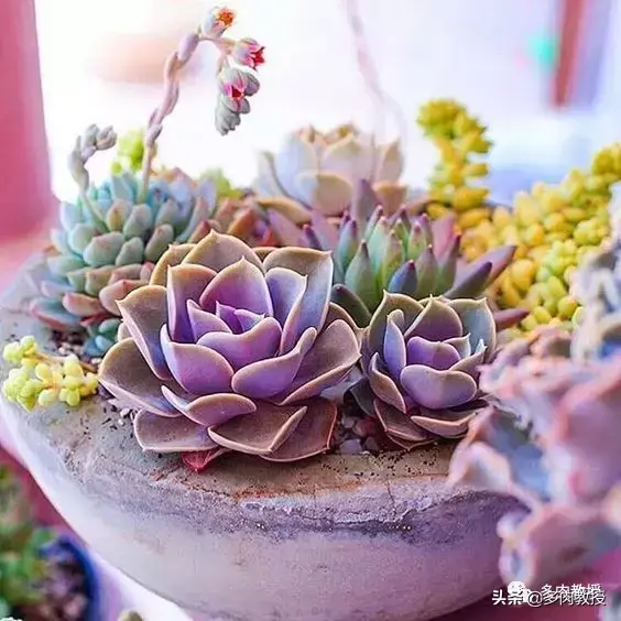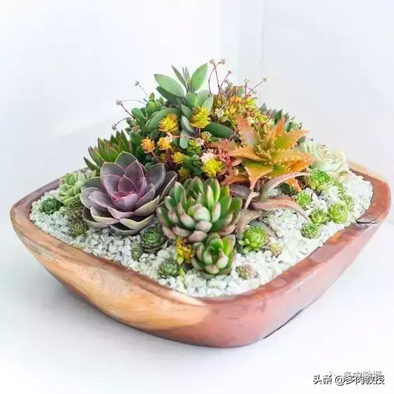 2,养护方法大致相同的多肉高低错落大小不一,最好颜色各异的种在一起,加上多肉大都养护都差不多,这类拼盘就很简单也很好看,大家都可以做到。