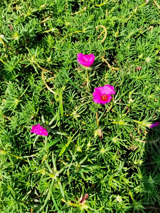 阔叶半枝莲不怕炎热,属于强日照植物,日照不足,就会导致开花少或者不开花,叶片也会徒长,想要开花多,须日照充足,夏天很多路边的植物都在忍受高温,它倒越开越多。一点都不影响它的美丽。