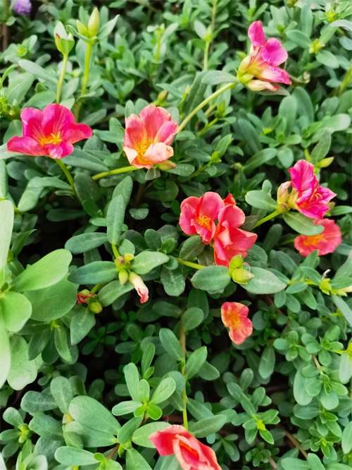 阔叶半枝莲是由马齿苋和大花马齿苋杂交而成的,因花似牡丹,又叫马齿牡丹,又因花像金色的小太阳,又叫太阳花。