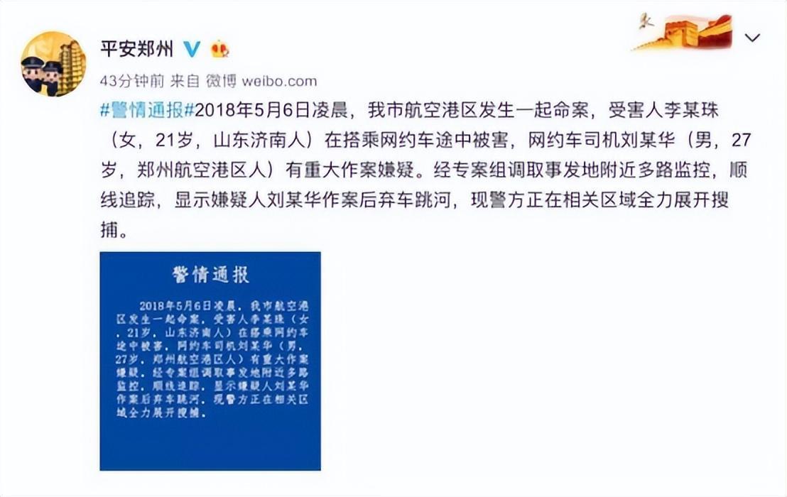 随后刘振华开着网约车逃之夭夭,一直到李明珠的父母没有在济南高铁站接到女儿,而且他们也一直没有打通李明珠的电话,随后他们联系了李明珠的单位同事,得知李明珠执飞航班抵达郑州的当天晚上,李明珠就离开了郑州。
