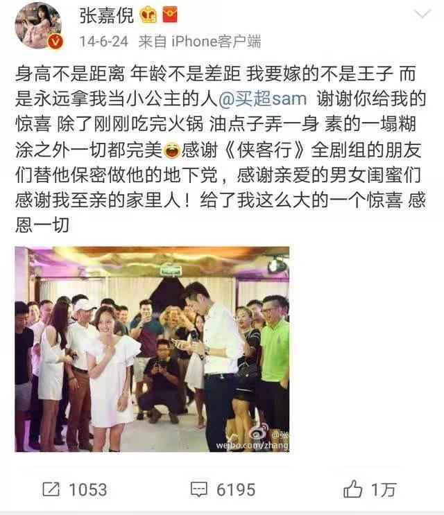 微博认证是:张嘉倪老公,求婚求了三次,告白时说:如果出轨,就自断双腿。