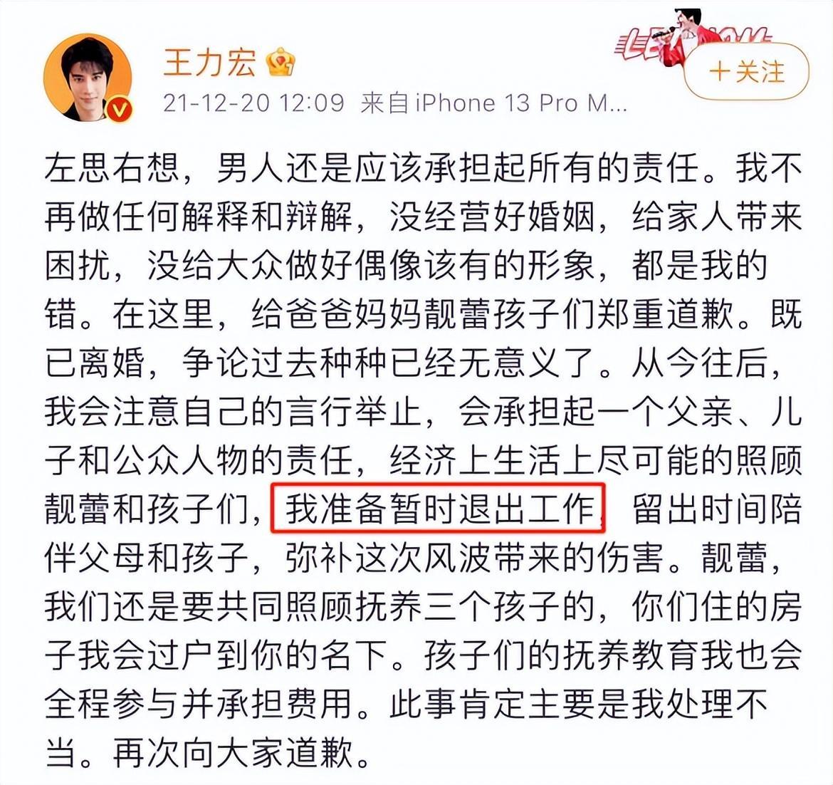 经过李靓蕾的一系列的实锤,王力宏被永久的打上了劣迹艺人的标签,只能宣布暂时退出娱乐圈。