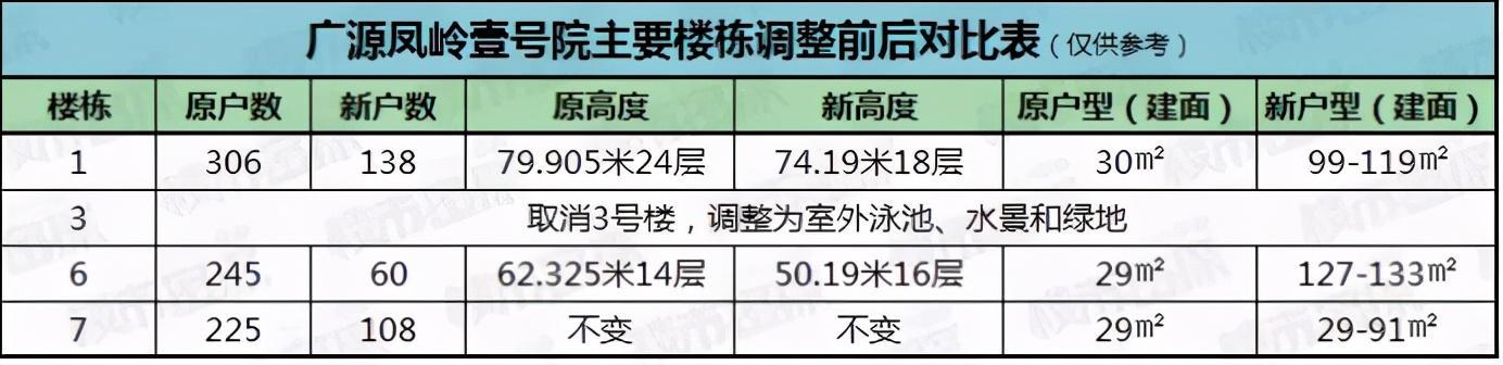 根据《公示》内容,广源凤岭壹号院主要做了以下调整: