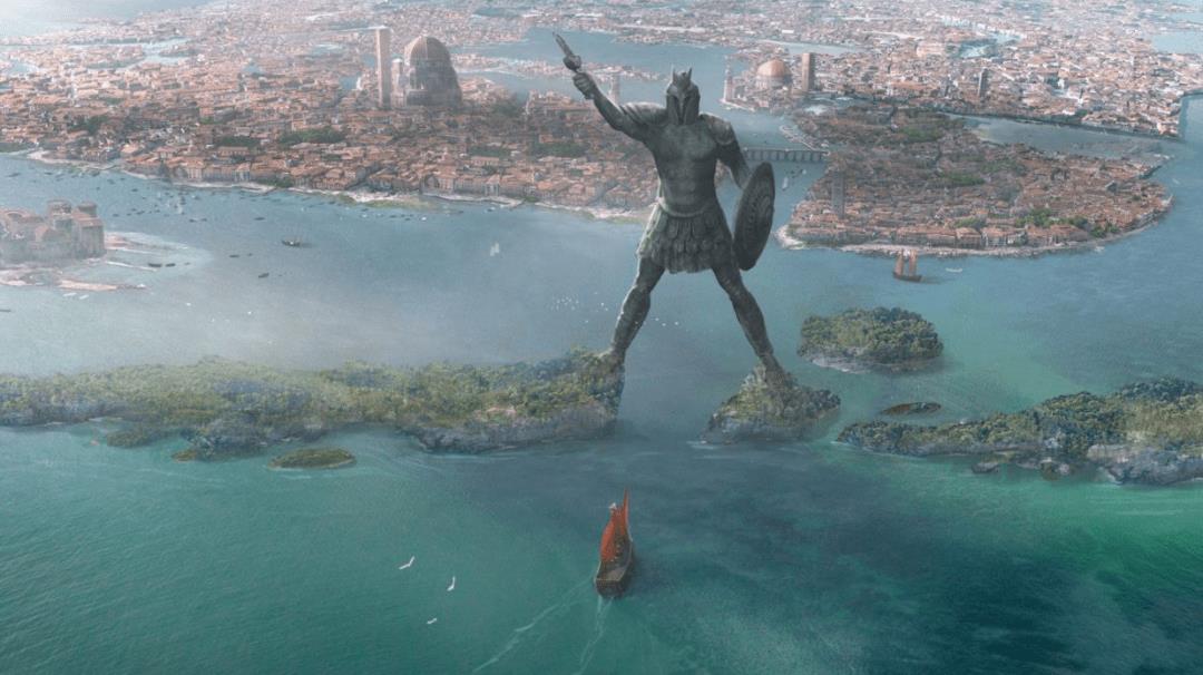 有的说《权利的游戏》中的布拉佛斯城的巨人像应该就是罗德岛太阳神巨像的原型。两腿分跨两岸。