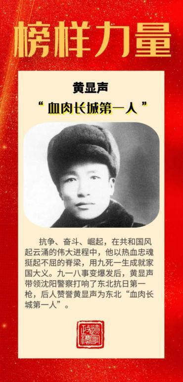 黄显声将军是张学良将军亲信。1921年进入东北讲武堂第三期炮兵科,1928年,任东北军卫队旅旅长。九一八事变时,黄显声是辽宁省警务处长兼沈阳市公安局长。事变前夕,将军将2000名沈阳警察统编为一个总队并发枪。他自己从9月初开始昼夜不离办公室,随时准备应变。所以“九一八”事变一发生,他率领的警察总队立即投入了抗击日军的战斗中。将军实属九一八以来率部成建制反抗日本侵略第一人。