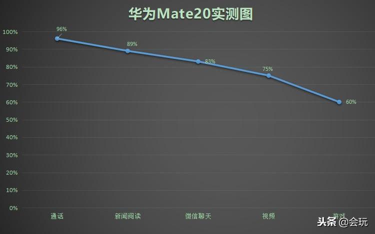 我们通过模拟日常使用来进行Mate 20的常用应用续航测试。分别连续进行1小时的通话、网页、音乐、视频、游戏等常用场景,我们发现,Mate 201小时通话耗电4%,1小时新闻阅读耗电7%,1小时微信聊天耗电6%,1小时视频耗电8%, 1小时游戏耗电15%。可以说,配备了4000毫安电池的Mate 20配合省电优化,完全不用担心手机没电的问题。