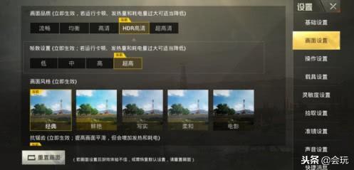 接下来,再让我们聚焦游戏实际体验。我们首先选择的是当下最火热的吃鸡游戏《绝地求生:刺激战场》,将游戏画面设置都调整到HDR高清、超高帧率、经典画面风格、打开抗锯齿、阴影等最高级画质。
