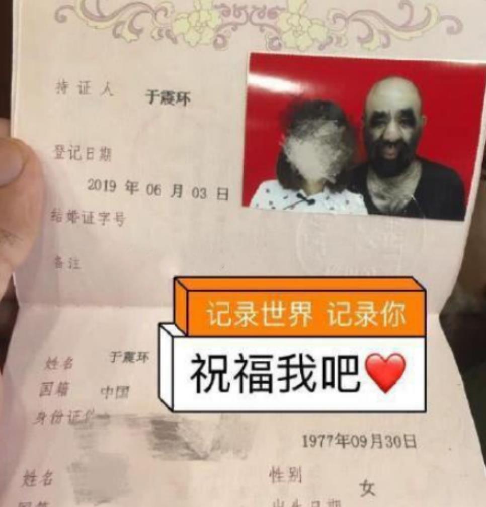 就这样一直到了2019年,于震寰直接在网上发布了自己的结婚证。