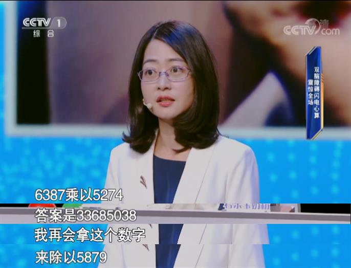 可这还没完,在撒贝宁还没来得及公布正确答案的过程中,吴美玲就已经再次在大脑中完成了一道四位数乘以四位数的计算题!