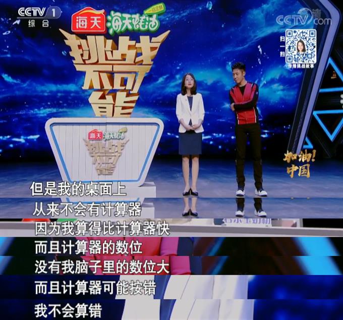 接下来吴美玲要完成的是双脑闪电算的更高难度版,直接突破了现有的脑力运算极限,在这个领域当中,全球无人能完成。