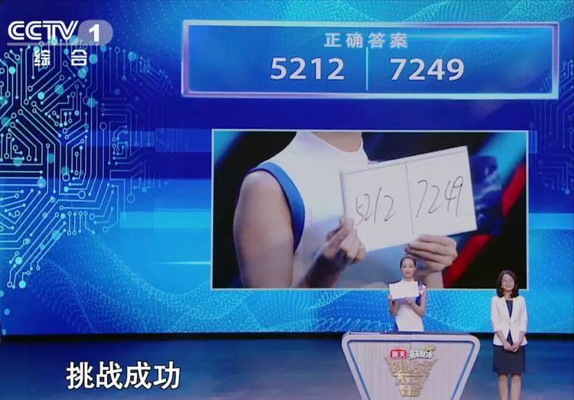 这场热身赛的挑战规则是,20个两位数的数字以0.24秒的速度在大屏幕两侧闪现,也就是正常人一眨眼的功夫。