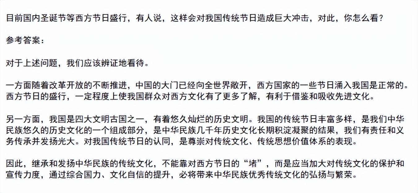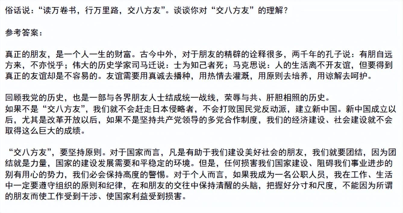 综合分析题——给出来一个社会现象、领导发言、舆论观点,通过回答看考生看待问题的角度够不够全面、有没有深度。
