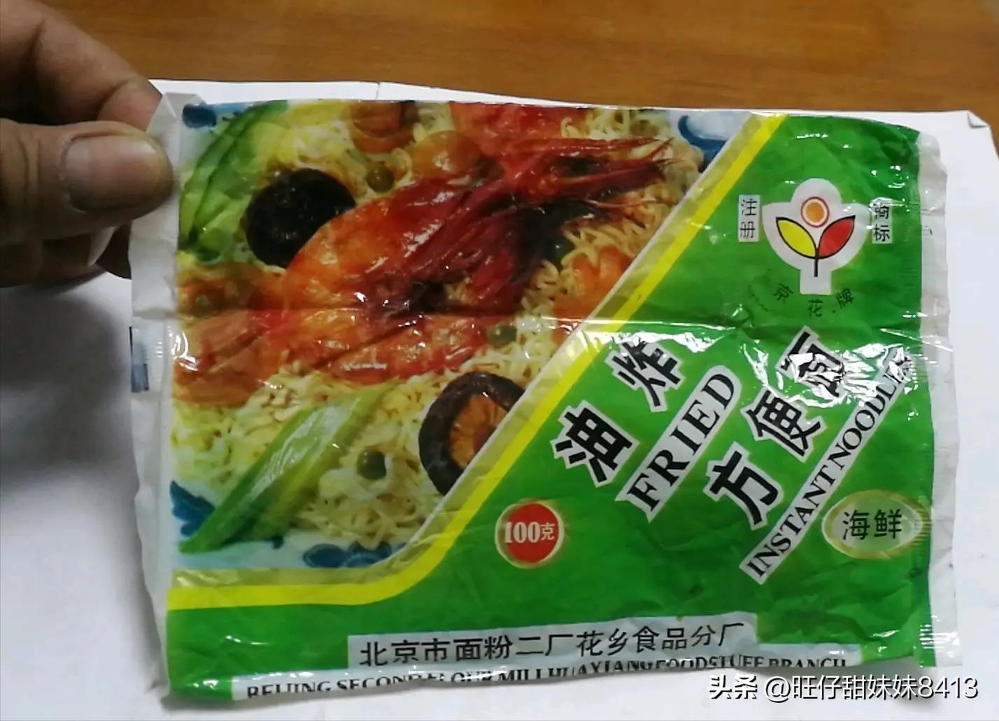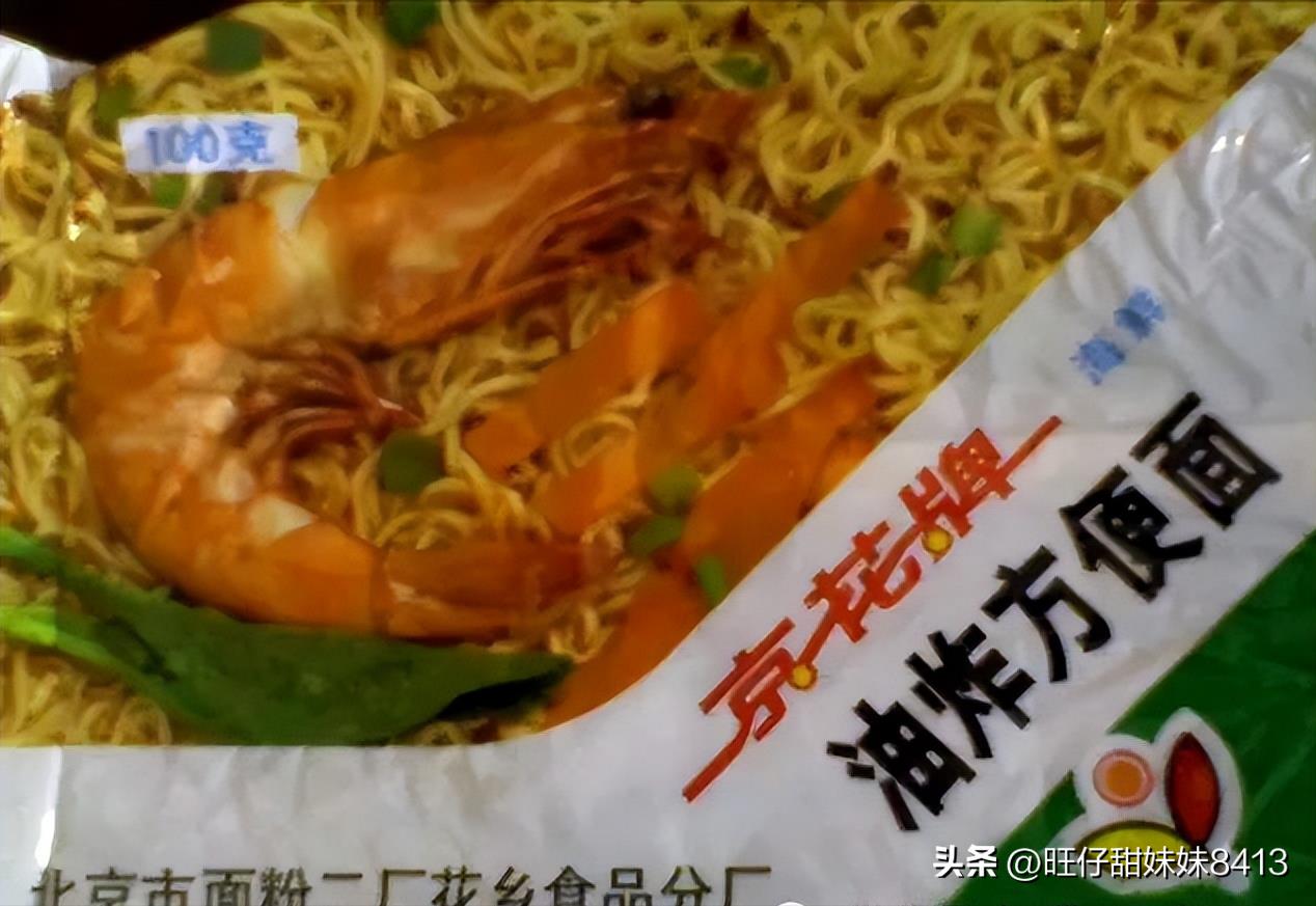京花牌方便面,大概是八二吧开始吃方便面,北京面粉二厂的。当时的京花牌方便面,还要粮票呢!两毛八了,二两粮票!带大虾图案的绿袋 味道不错 。