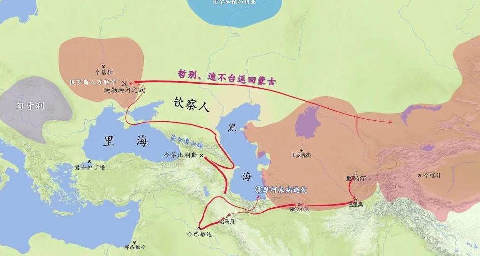 于是蒙古大军从萨马尔汗一路推到阿塞拜疆,之后翻越高加索山,大破阿兰人和库曼人,导致库曼人哭着跑到俄罗斯地区找大哥帮忙。于是基辅大公亲率8万罗斯联军对蒙古军发动了迦勒迦河战役。