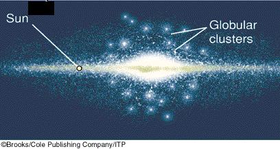 1917年,哈洛·沙普利(Harlow Shapley)通过测量球状星团与地球的距离,发现这个球面半径至少为10 kpc(1kpc=3260光年)。而球心则在朝半人马方向上的8.5kpc,这是人类第一次知道银河系中心的位置,同时宣告日心说的破产。