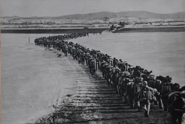 后来在美军被打得一路南退,逃命经过水门桥的时候,竟然看到了埋伏在雪地中的志愿军,他们当场吓得腿软,可是躲避了半晌都没有听到枪炮声。