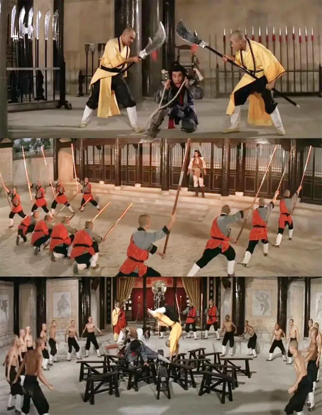 该片最大看点自然是动作设计,第二次闯少林有个闯三关,大刀阵、十二金刚阵已经让导演和编剧绞尽脑汁,最后方丈亲自坐镇的“板凳阵”更是令人拍案叫绝。