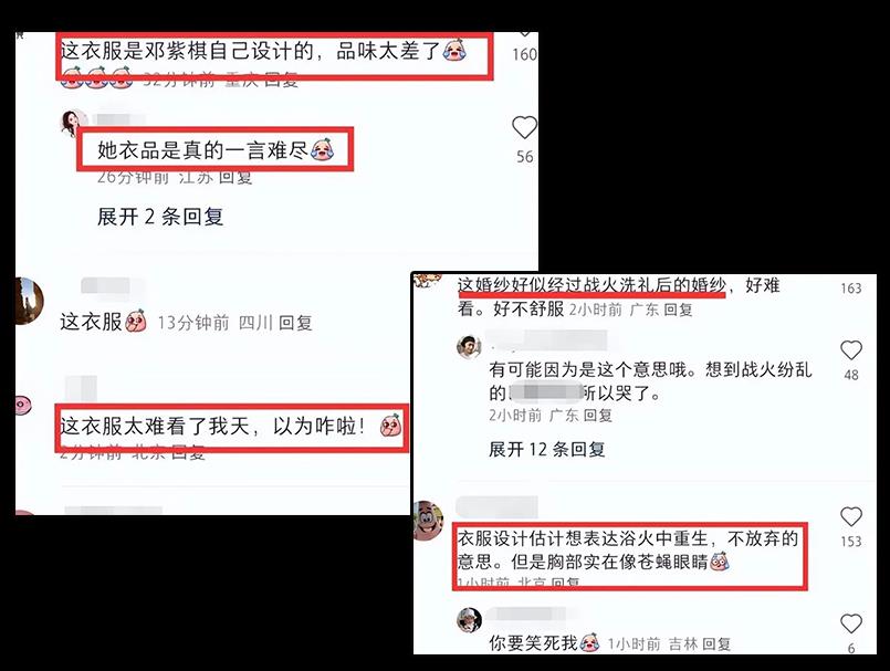 除此之外,这条裙子的裙摆设计也不合理,导致邓紫棋意外摔倒。