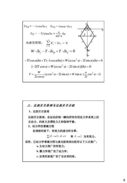 在书中达朗贝尔还提出了著名的达朗贝尔原理。这个原理与牛顿第二定律相似,但它的发展在于可以把动力学问题转化为静力学问题处理。还可以用平面静力的方法分析刚体的平面运动,这一原理使一些力学问题的分析简单化,并且为分析力学的创立打下了基础。