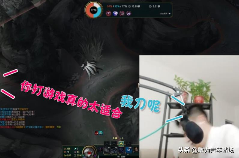 智勋为了让直播和妹纸感觉到他的幽默,直接吼叫,我刀呢?这个时候妹纸还在嬉笑,随口来了句你打游戏真的太适合了。而我们的智勋还在到处寻刀,估计也拿不出什么像样的刀具,极大可能是把菜刀。