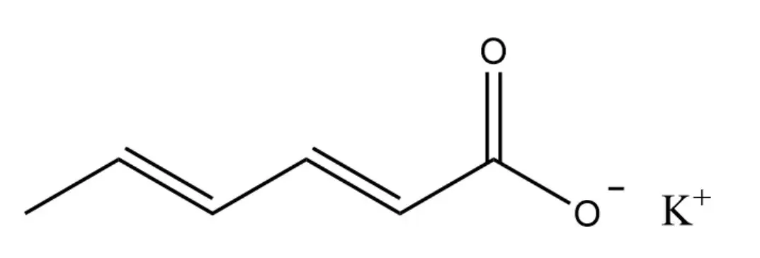 首先,我们来了解一下山梨酸钾的基本性质。山梨酸钾,又名2,4-己二烯酸钾,分子式为C6H7O2K,是一种白色结晶性粉末,无臭,味咸。它易溶于水,但在醇和醚中几乎不溶。山梨酸钾的化学结构式如图所示,相对分子质量为150.22。