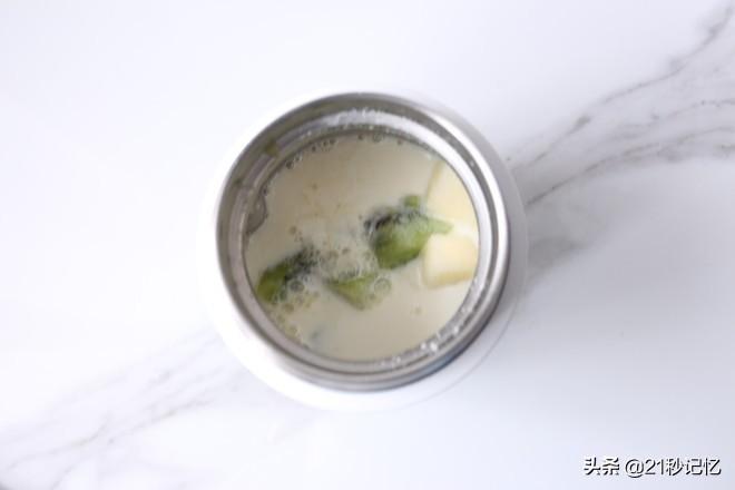 第四款:奇异果苹果奶昔;牛奶 120ML、苹果 半个、奇异果 1个。
