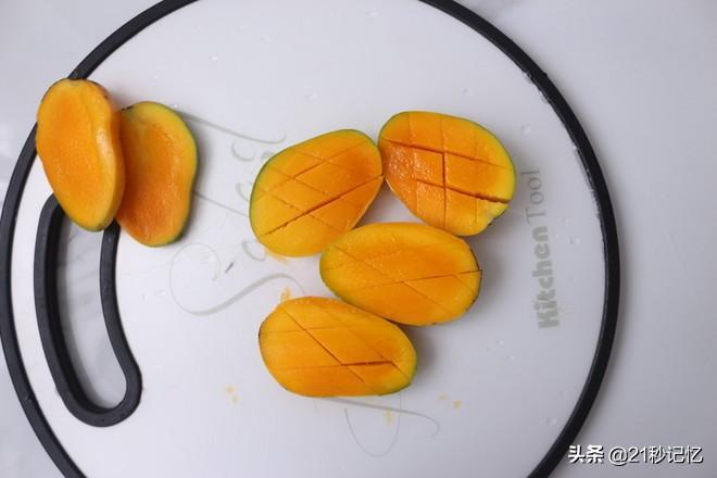 芒果去皮切成小块。