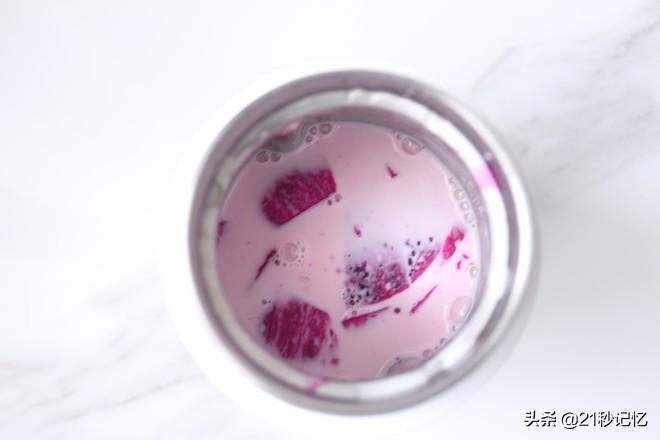 食材:红心火龙果半个,牛奶150ML。