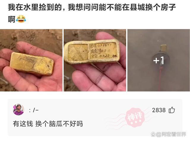 捡到了金块,我感觉要发财了。