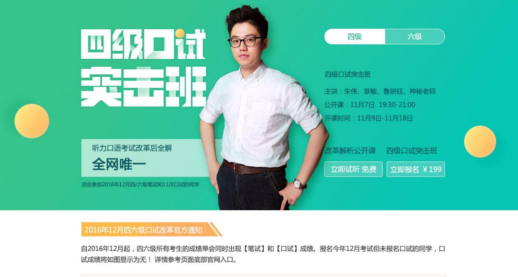 在四六级改革增加口试的背景下,双方合作推出的第一套课程就是针对改革后四六级应考的直播课程。朱伟将在 CCtalk 课堂上首发《英语四/六级口语测试白皮书》和定制模考题,并与其团队的四位名师一起直播授课。