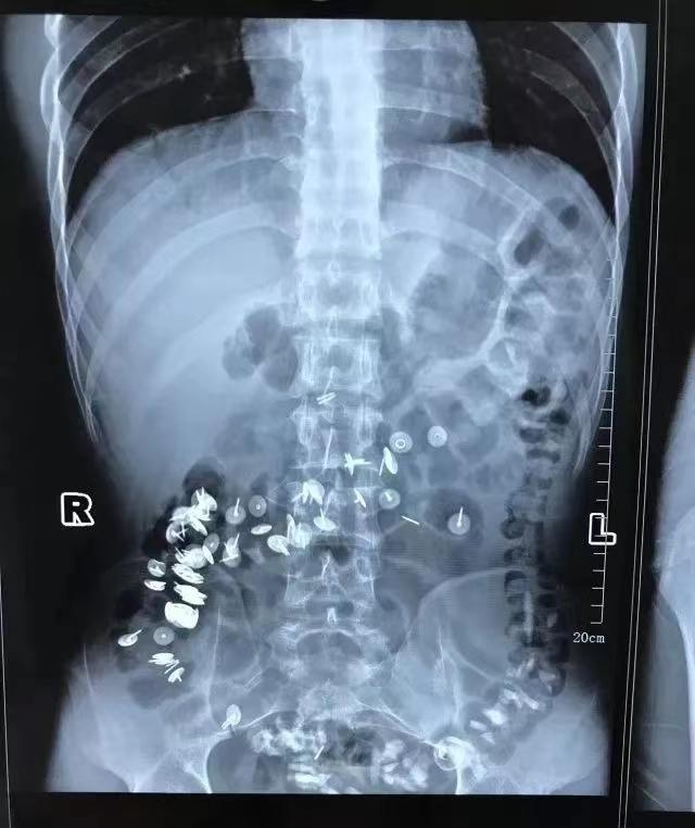 幸运的是,数百颗图钉在消化道里都没有造成胃肠道穿孔。