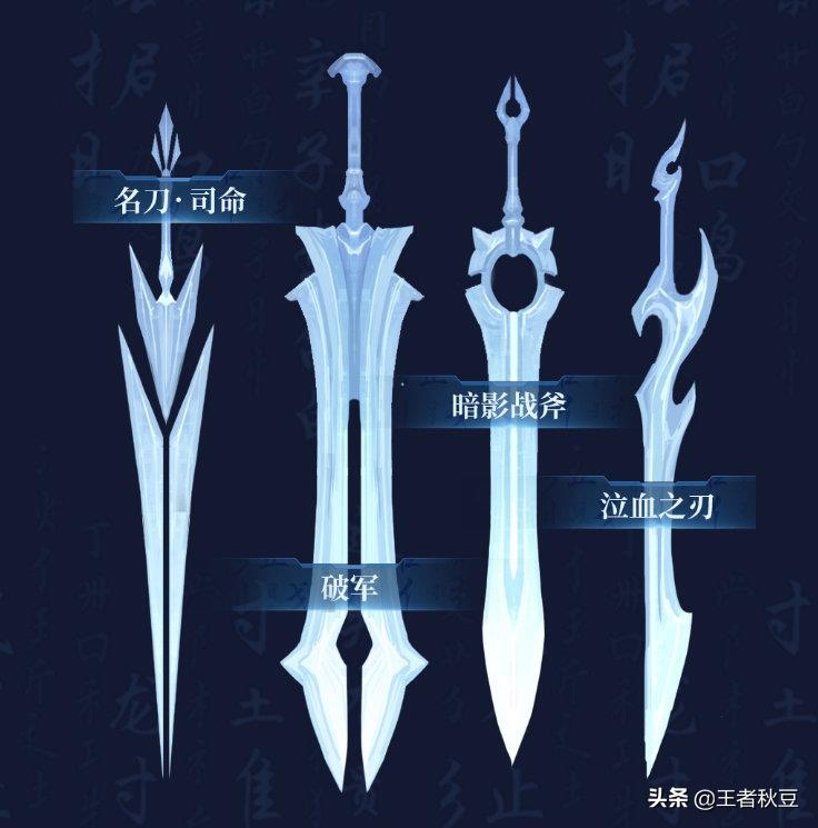 李白每次普攻后背上都会出现一把银剑,这4把剑分别是名刀、破军、黑切、和吸血刀,分别对应李白必出的几件装备。
