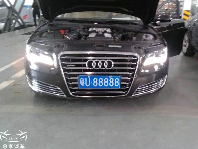 粤U88888在奥迪A8L上。粤U的归属地属于潮州市,在网上估值了一下车牌,价值150万,估值仅供参考。连车加牌其价值仅次于V8宾利飞驰。