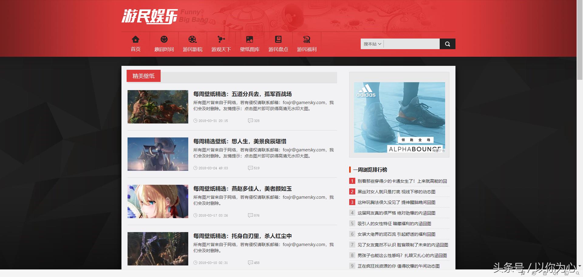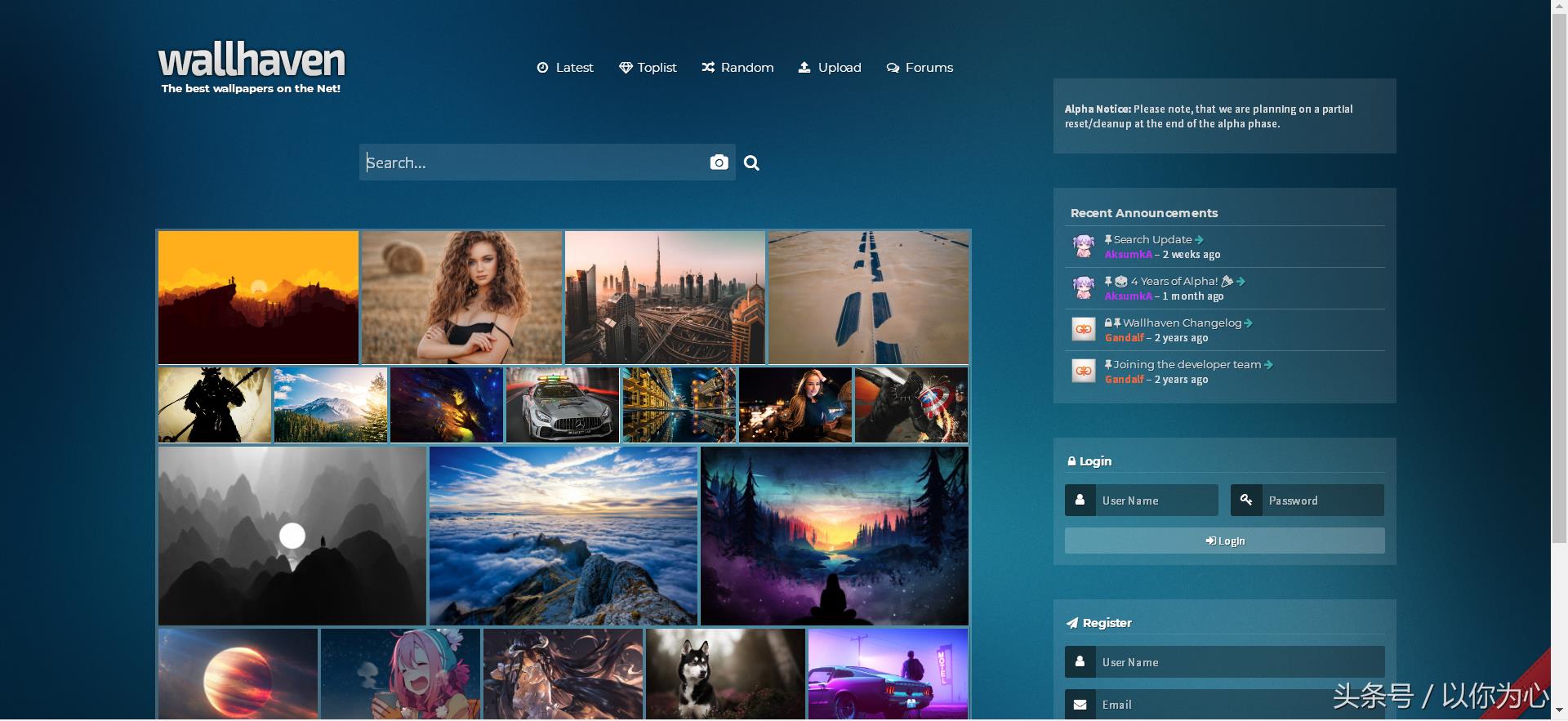 我最喜欢的壁纸网站,因为是国内网站、速度比较快。每周都会有小编精选壁纸进行推荐。有大量高清游戏壁纸、二次元壁纸、星空壁纸、手机壁纸。重点是推荐的壁纸真的都非常适合做壁纸。缺点:找壁纸全靠手动淘(别看有搜索框、实际上不是搜索壁纸的哦)。