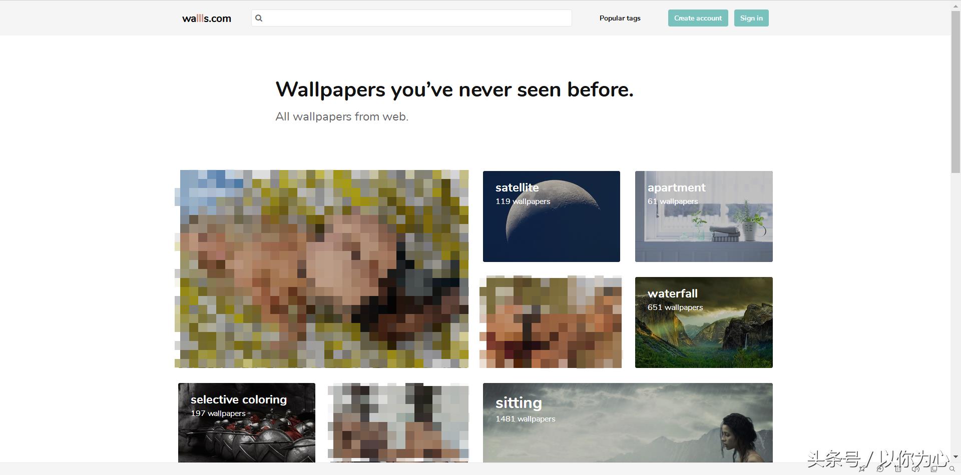 注意是「wallls」字母a后面有三个「L」。国外网站,自带按主题分类。只是,首页推荐的主题有时不大河蟹。也可以按颜色分类。壁纸质量高、资源略少、访问速度有些慢。另外,虽然有搜索框,但并不能使用。如果是淘壁纸可以来这里。注意:说明一点,该网站没有不良信息,打马赛克是因为小编胆小。
