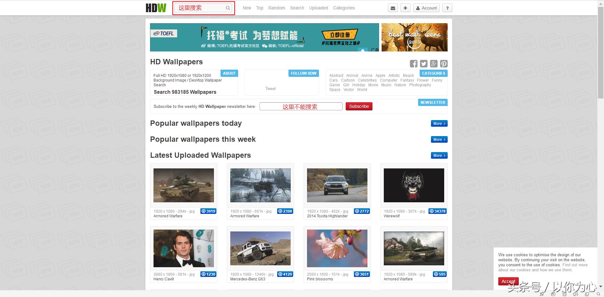 访问较快、内容较多、高清、免费。内容比「wallhaven」和「Wallpaper Abyss」要少,需要用英文搜索。搜索时去顶栏的搜索框搜索,不要搞错了。